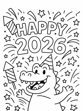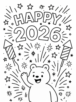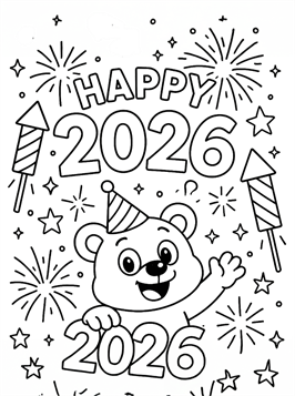 Ausmalbilder mit den besten Wünschen für das neue Jahr 2026. Möge es ein glückliches und gesundes Jahr für alle Menschen weltweit werden.