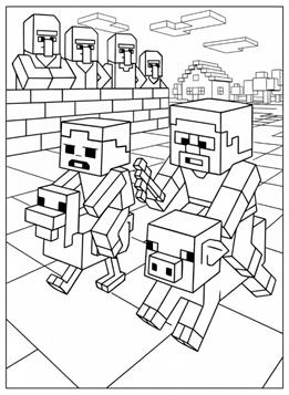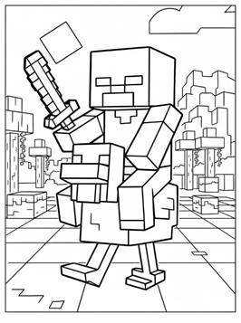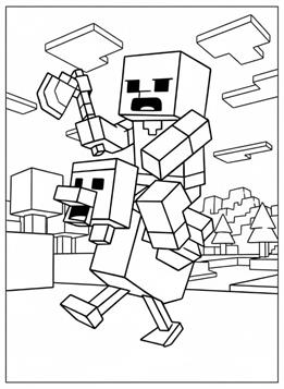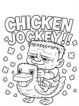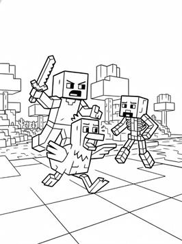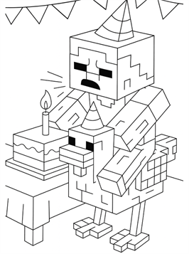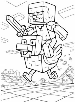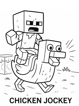 Ausmalbilder von Chicken Jockey aus Minecraft. Chicken Jockey ist ein seltener Minecraft-Mob: ein Zombiebaby auf einem Huhn. Diese einzigartige Kombination taucht nur sporadisch im Spiel auf und ist für ihre Geschwindigkeit und ihre unerwarteten Angriffe bekannt. Auf unserer Website kannst du Chicken Jockey selbst in einer typischen Minecraft-Wüstenlandschaft ausmalen. Perfekt für alle Minecraft-Fans, die gerne kreativ werden.